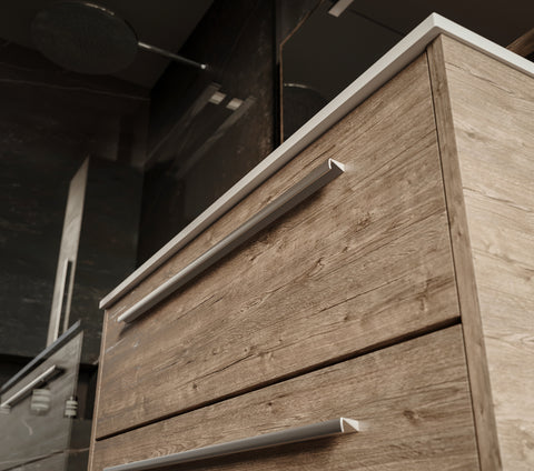 La collezione Essenza porta nel bagno l’autenticità del legno in due tonalità delicate: Larice Dolomite e Larice Cenere. I mobili dal design contemporaneo uniscono superfici spazzolate e venature naturali a dettagli in metallo cromato, creando un equilibrio perfetto tra modernità e calore. Ogni composizione è studiata per ottimizzare gli spazi con eleganza e funzionalità.