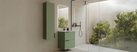 Ogni set è composto da lavabi integrati in resina o ceramica e basi realizzate in pannelli nobilitati E1 ecologici, resistenti all’umidità e all’usura quotidiana. Cassetti e ante sono dotati di sistemi di apertura ammortizzata per un movimento fluido e silenzioso, mentre l’optional della illuminazione LED nei cassetti aggiunge comfort e atmosfera. Le finiture spaziano dai toni neutri – come bianco luce, tortora e poro noce – ai colori più attuali come blu oceano e verde salvia, permettendo di abbinare il set al tuo stile di arredo.