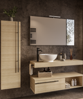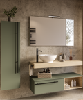 Questo set di mobili da bagno è disponibile in 5 colorazioni (bianco luce, blu oceano, tortora milano, rovere naturale, verde salvia) con o senza illuminazione del cassetto.