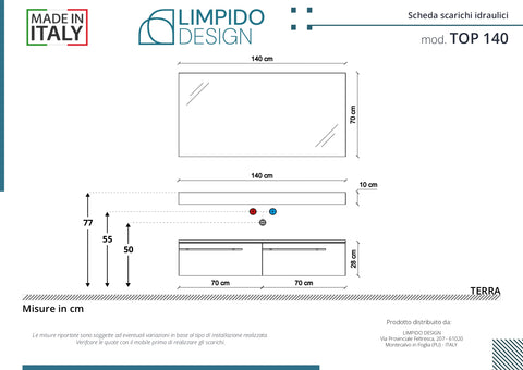 - Top: L 140.5 X P 46 X H 10 cm (incluso di staffe)