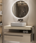 Questo set di mobili da bagno è disponibile in 5 colorazioni (bianco luce, blu oceano, tortora milano, rovere naturale, verde salvia) con o senza illuminazione del cassetto..